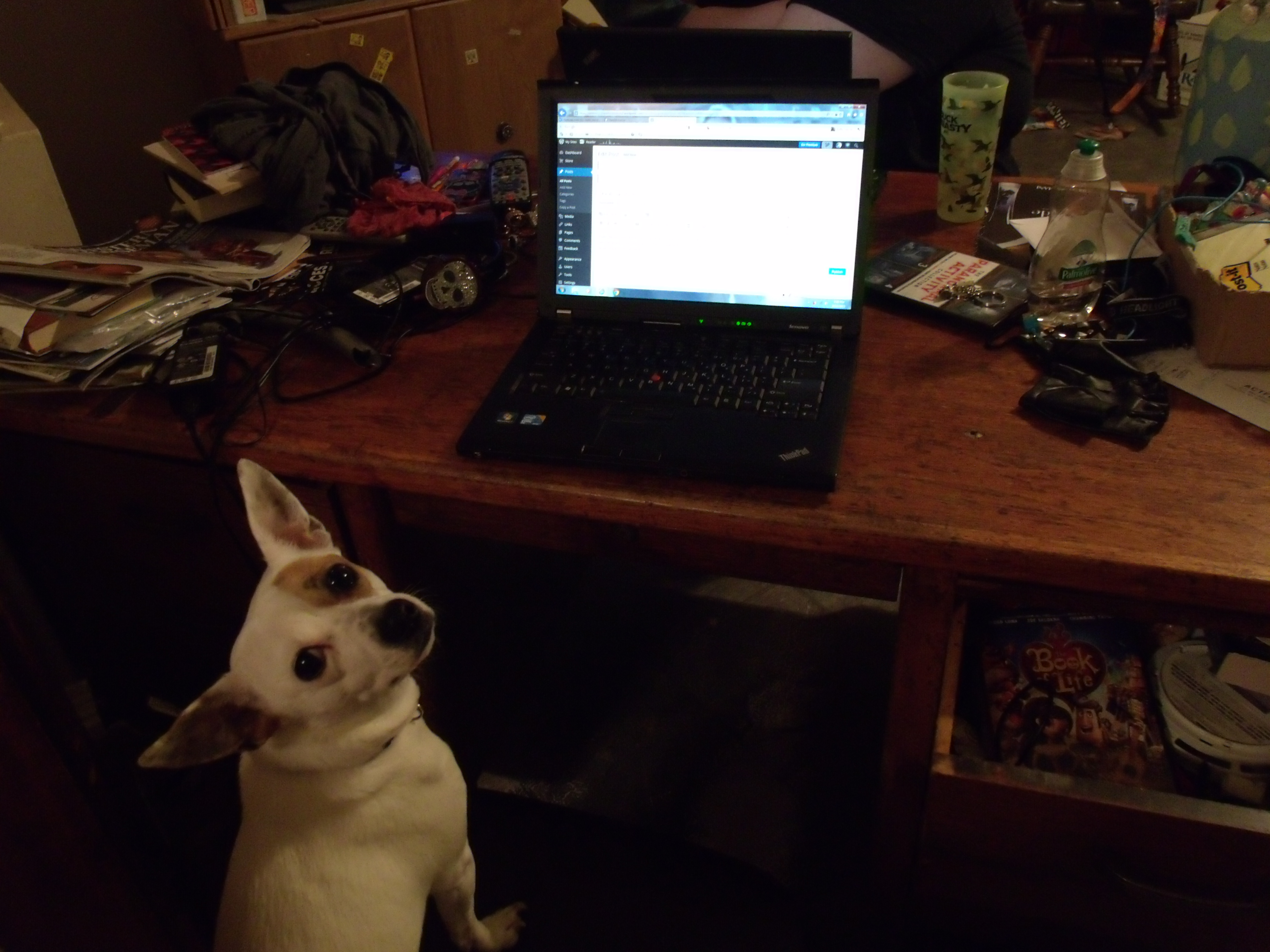 I was in the middle of a blog post last night, but I made the mistake of going to the kitchen for coffee. When I came back, Jinx was working on the post!
