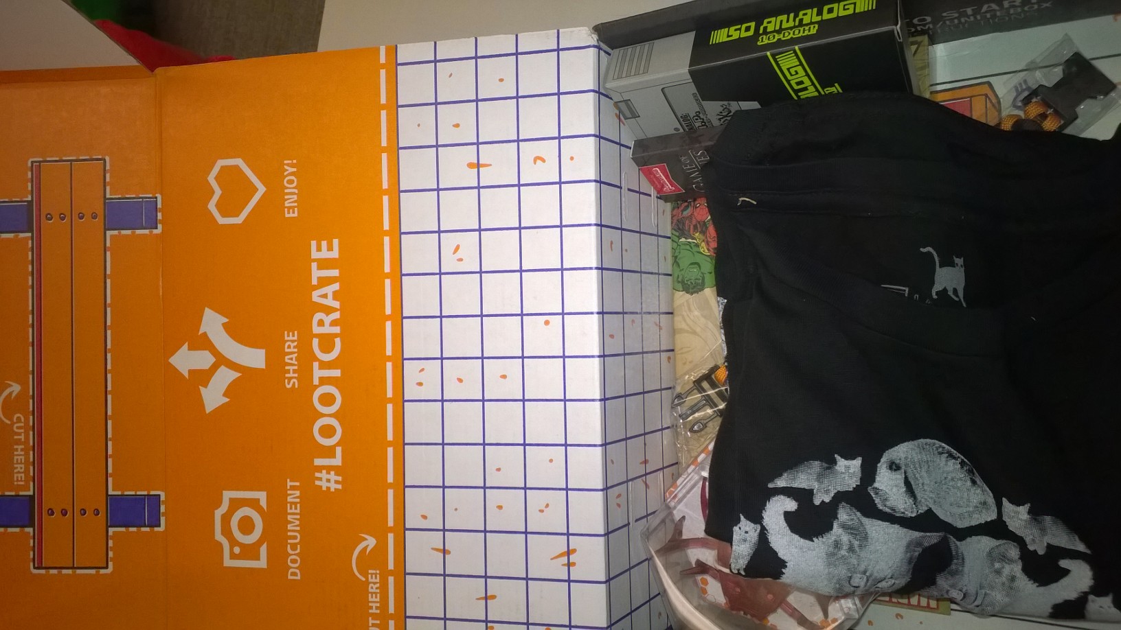 I ordered my daughter a LootCrate (for the second time).  When I picked it up from the post office yesterday, I opened it to get a sneak peek.  (I’m bad, I know.)  Ysabela was thrilled to unpack it herself.