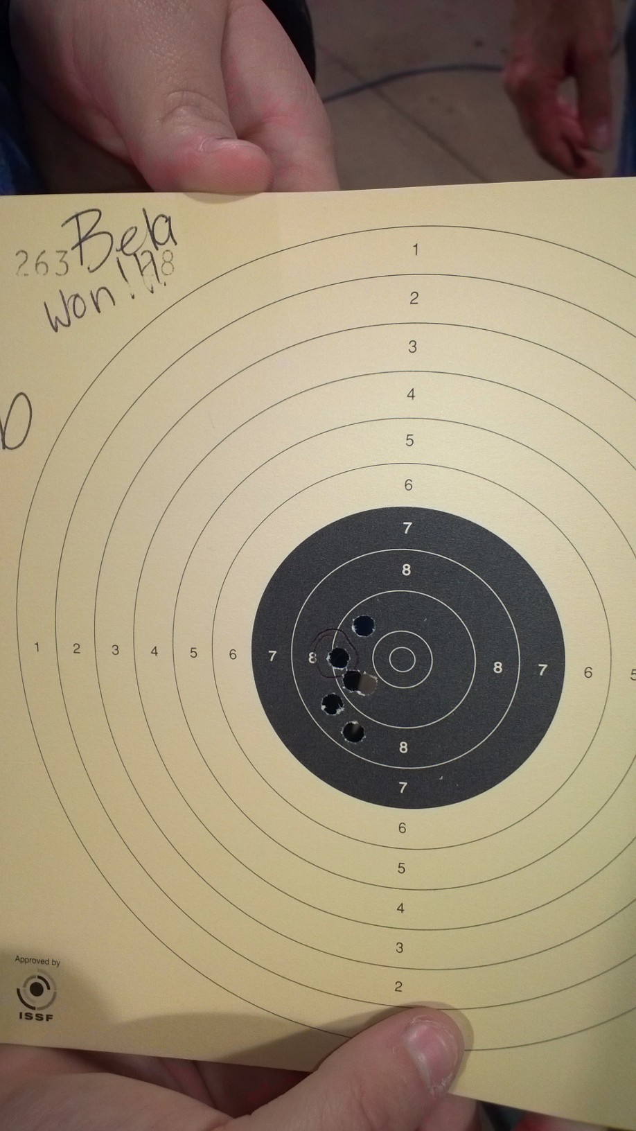 Bela and I had shooting practice again yesterday.  We ended up having a “shoot out” with our teacher.  Bela won.  I got to shoot with my right hand as well as my (non-dominant) left.  My dad would be proud because we both shot in the black.  Not too bad!