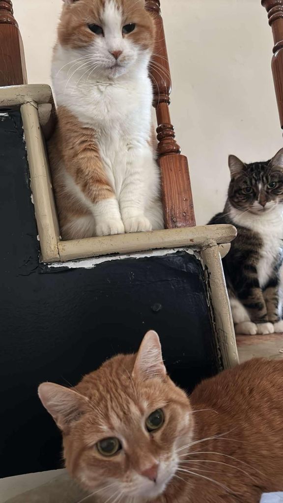 Tator Tot is the sweetest young kitty in our neighborhood. He tries to force me to pick him up so he can purr in my face. He knows he is my darling.