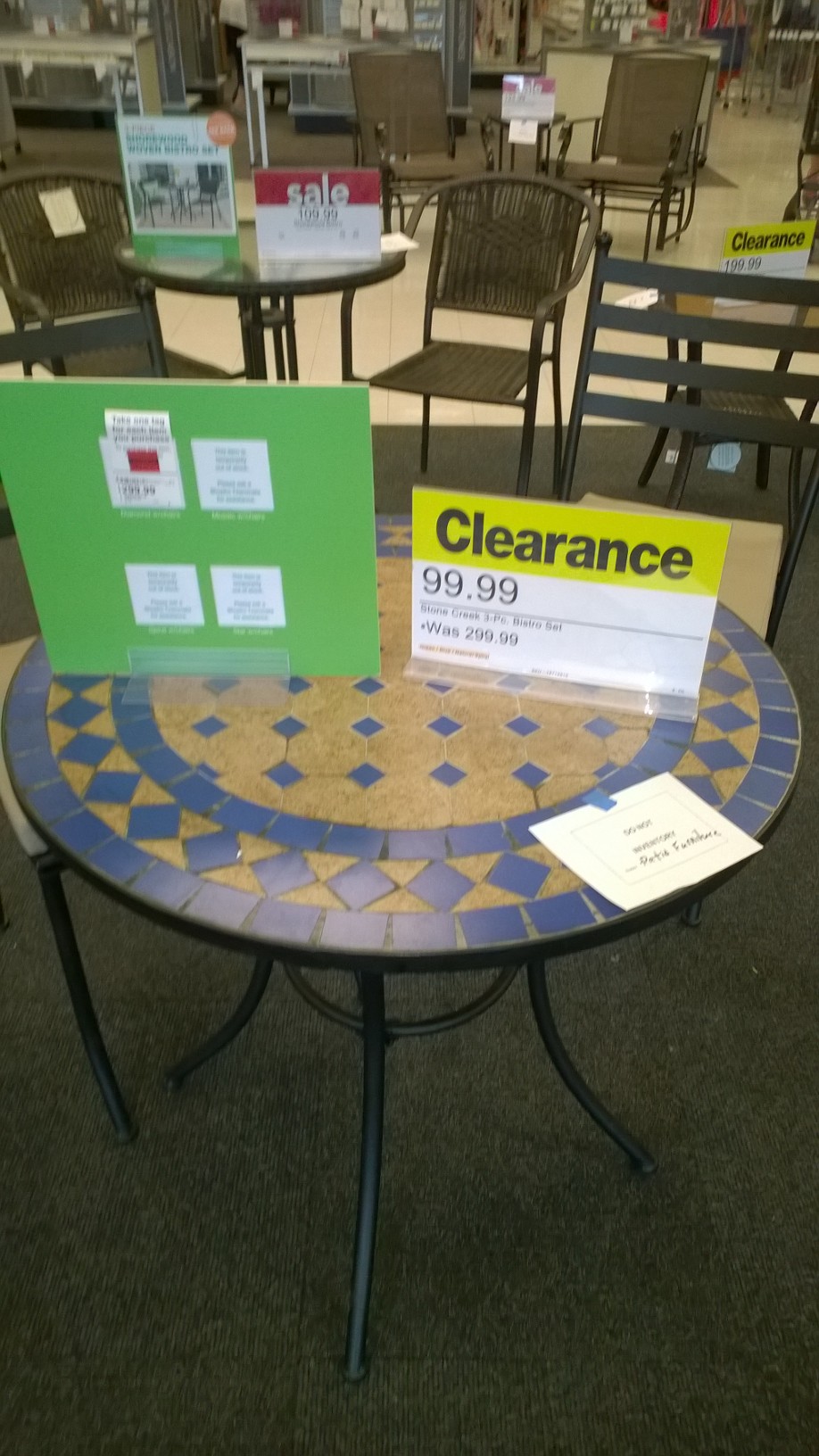 Last night I had planned to get up early and take Bela’s glasses to North Platte’s ShopKo to be repaired. I got up early, but made the mistake of snuggling a pup. I fell back asleep! By the time Bela and I were awake enough to discuss taking her glasses, it was about 10:30. When I go to North Platte, I prefer to make an early morning, flying trip and get home ASAP. So much for my plan. We finally left town around lunch time. Our first stop was A to Z Books. I took some old books to turn in for store credit, so Bela ended up with a Manga book and three comic books ($1 each for the comics), and I was lucky enough to find a Christine Feehan book. For less than $10, I got it all! Our second stop was ShopKo, which was our intended destination (if you recall). As soon as I walked in the store, I saw it…the most adorable patio table with two chairs. It was (gasp) on sale! The original price was $299.99. This lovely table was marked down to $99.99. I knew if I waited and thought to buy it a week from now, it would be gone. It was now or never. I ended up buying the table for my classroom! It will be perfect for Spanish class. When I thought the deal couldn’t be better, the lovely Regina (cashier) gave me a coupon worth $10 off on a purchase of $50 or more! When it was all said and done, I only paid $90.28 plus tax for that wonderful table!