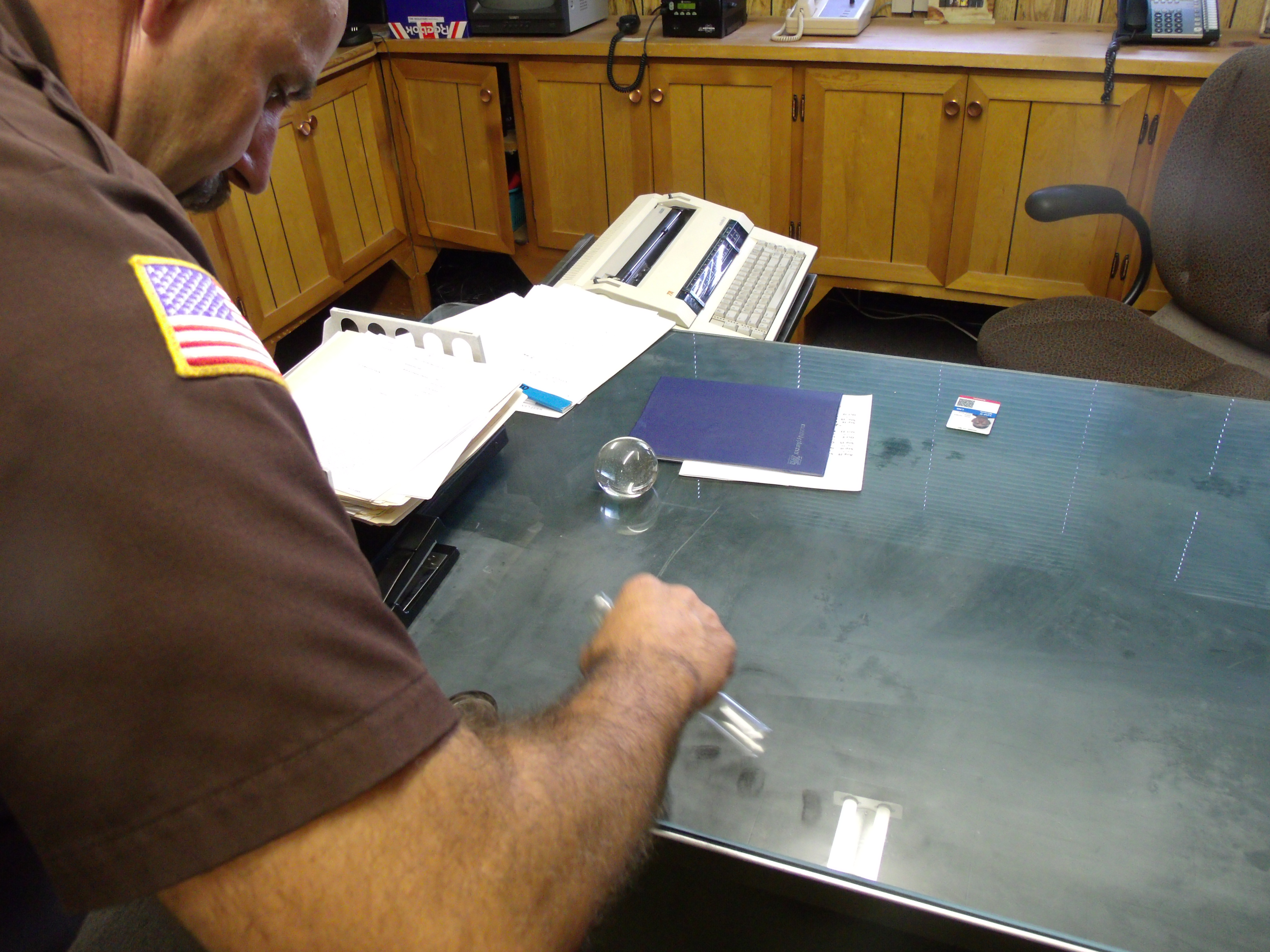 My daughter and I found an amazing forensics class online. Since my public school day ends at two on Fridays, we decided to complete work for forensics every Friday. Yesterday we took a field trip to the local sheriff’s office to look at the equipment for lifting prints.