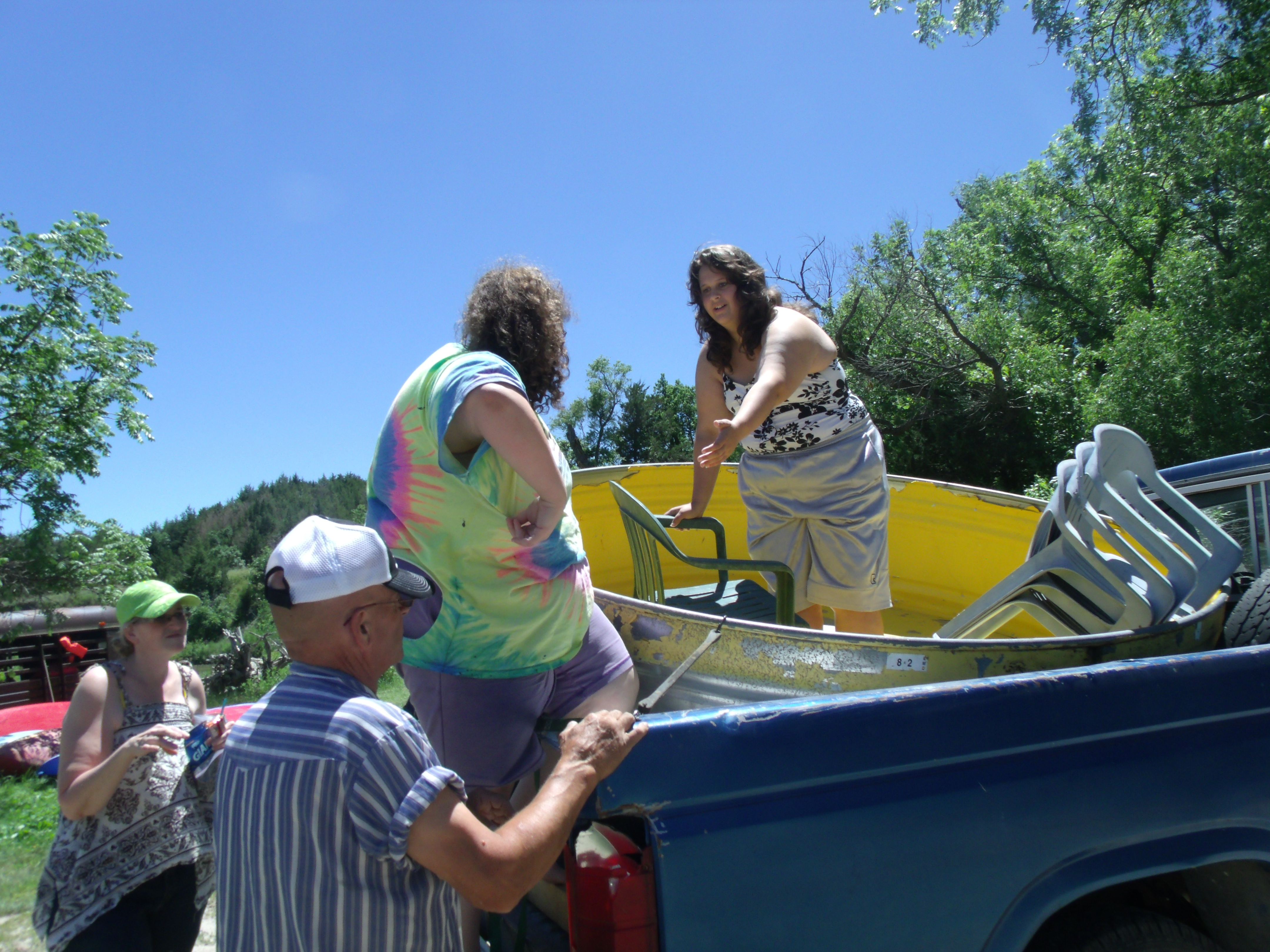 Glenn had brought some chairs to use in the tank, but Stacey sat on the cooler, and Bela and I sat flat on the tank bottom. I wanted a low center of gravity so I wouldn’t fall out! We stopped after about an hour and a half, and Gen spent some time swimming while Bela and I waded in the water. We got a bit bogged down in mud, but the water under it was quite refreshing! My feet were happy.